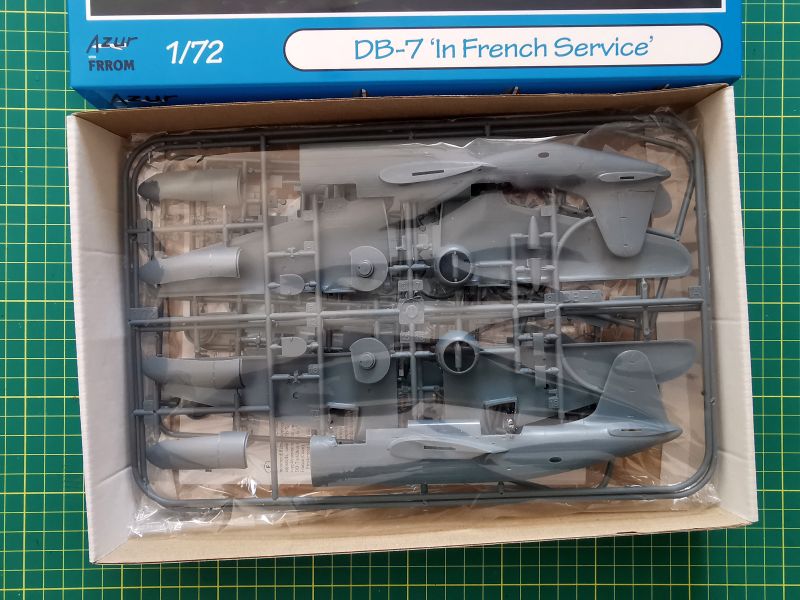 Jeśli chodzi o sposób wydania zestawu i szatę graficzną pudełka czy instrukcji, w firmie Azur Frrom nie zmieniło się kompletnie nic. Zwraca uwagę bardzo ładny boxart przedstawiający DB-7 pod ogniem artylerii przeciwlotniczej. Jeżeli chodzi o zawartość pudełka, to od początku było wiadomo, że powstała ona w Czechach, a dokładnie w firmie Special Hobby, która wciela w życie koncepcje wydawnicze firmy Azur Frrom. Mamy zatem kolejnego przedstawiciela licznej rodziny modeli średnich bombowców Douglasa wydawanych najpierw pod szyldem MPM a później Special Hobby. Dlatego myślałem, że będę miał ułatwione zadanie i opiszę tylko różnice pomiędzy poprzednimi zestawami rodem z Czech a francuską propozycją. Okazało się jednak, że to zupełnie nowy zestaw, choć mocno nawiązujący do poprzedników. Dotyczy to podziału technologicznego i ogólnej koncepcji modelu. Dlatego zdecydowałem się na omówienie całej zawartości pudełka, bez pomijania czegokolwiek.