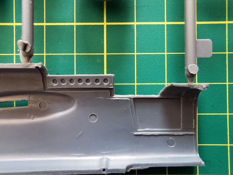 Bardzo ciekawie rozwiązano natomiast sprawę usterzenia poziomego. Jest ono na niewielkiej ramce oznaczonej jako „D”. Niby nic wielkiego, bo sposób wykonania tych elementów to to samo co skrzydła, ale ten, kto zna inne modele tej serii, bez trudu skojarzy, że ta właśnie ramka to fragment ramki „A”, tej z kadłubem, wchodzącej w skład modeli A-20 G lub podobnych.