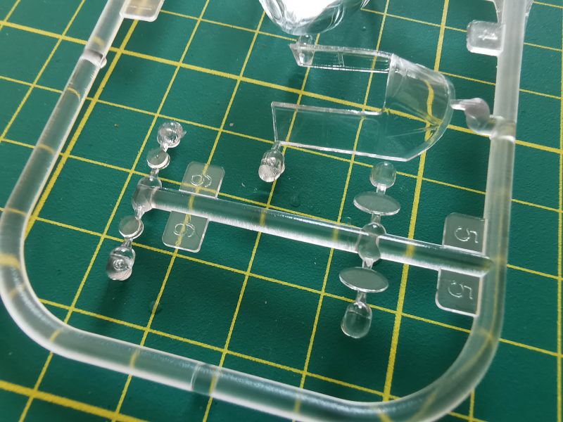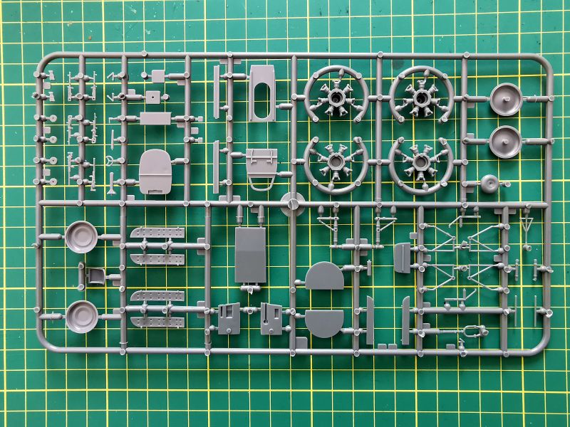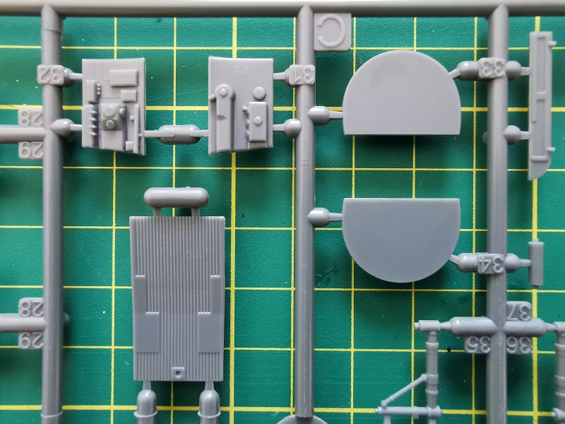 Ramka „C” to szereg drobnych detali, głównie przedziałów załogi, ale także silników, luków podwozia i samego podwozia. Trzeba przyznać, że wygląda to naprawdę dobrze, sporo tej drobnicy i to tego bardzo misternie odtworzonej. Wystarczy spojrzeć na detale kokpitu, gwiazdy silników czy pokrywy luków podwozia. Te ostanie mają także zawiasy.