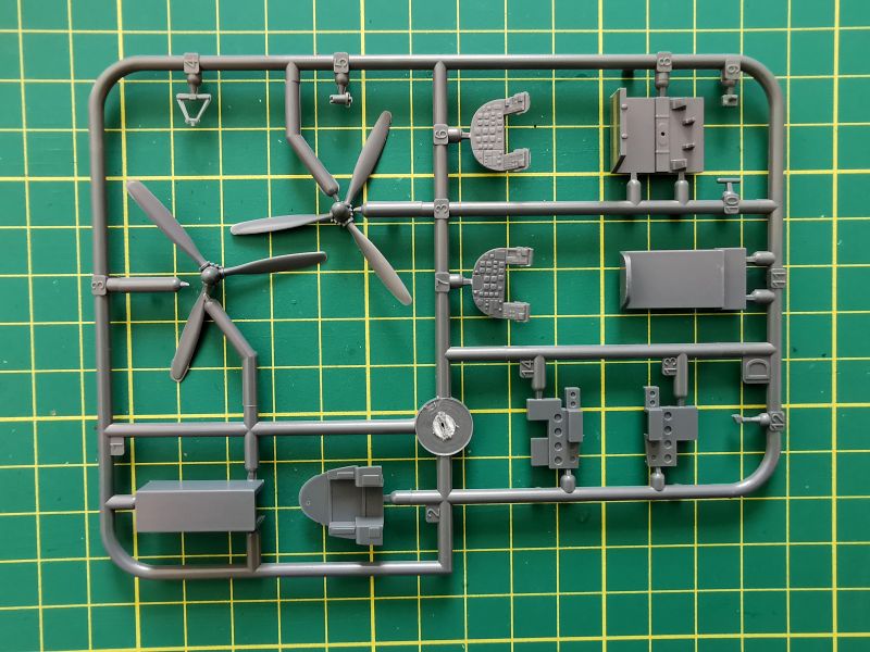Ramka „D” to z kolei śmigła, tablice przyrządów, z których wykorzystamy jedną oraz trochę detali kokpitu. Sposób wykonania identyczny jak w przypadku ramki „C”. Podejrzewam, że te ramki zostały już zaprojektowane z wykorzystaniem technologii cyfrowej.