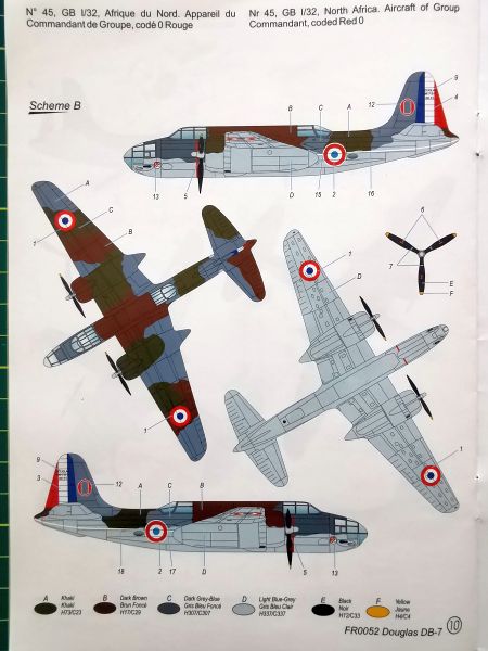 Do wyboru mamy trzy opcje malowania. Bazują na tym samym schemacie, takim typowo francuskim w postaci szaroniebiesko, zielono - brązowych plam o w miarę rozsądnym układzie, który nie przyprawia o ból głowy, tak jak choćby w przypadku CR-714. Tu możemy bezstresowo pomalować model wykonując sobie szablony z blue taca. Wszystkie schematy pochodzą z francuskiej Afryki Północnej, czyli „Spod nieba Maghrebu”. Ja jednak chciałbym zwrócić uwagę na pierwszy ze schematów. Może nie ma on jakiś atrakcyjnych elementów graficznych, w stosunku do dwóch pozostałych wygląda wręcz ubogo, ale najprawdopodobniej miał z nim kontakt polski personel lotniczy.