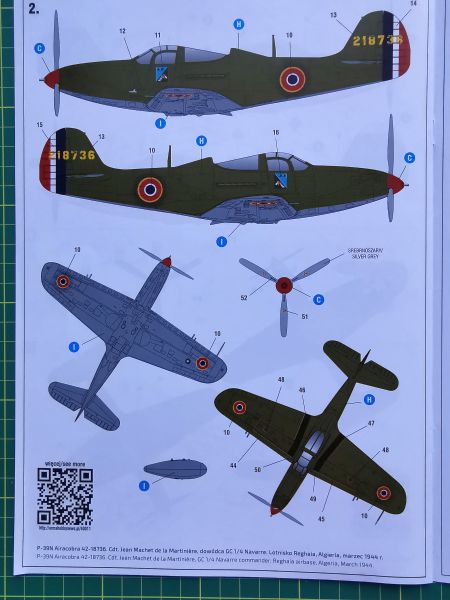 • P-39N Airacobra 42-18736. Cdt. Jean Machet de la Martinière, dowódca GC 1/4 Navarre. Lotnisko Reghaia, Algieria, marzec 1944 r.