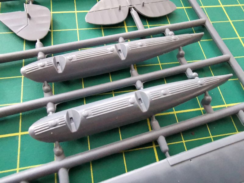 Podobnie jest ze wszystkimi powierzchniami sterowymi, które są wykonane jako integralne części usterzenia i dolanego płata. Jak chcemy nadać nieco życia naszej miniaturze, musimy się nieco postarać sami. Poza tym znajdziemy na tej wyprasce bardzo ładnie wykonane pływaki, silnik gwiazdowy oraz podobnie jak w przypadku poprzednio omówionej ramki trochę drobnych detali. Jedyne co może budzić zastrzeżenia to nieco grube popychacze cylindrów silnika gwiazdowego. Można oczywiście spróbować to poprawić, ale jeżeli jest do dyspozycji żywiczny zamiennik, można przemyśleć jego zastosowanie. Osobiście bardziej przypasowała mi wersja z tą właśnie jednostką napędową, ale co w tym zakresie zrobię, jeszcze nie wiem.