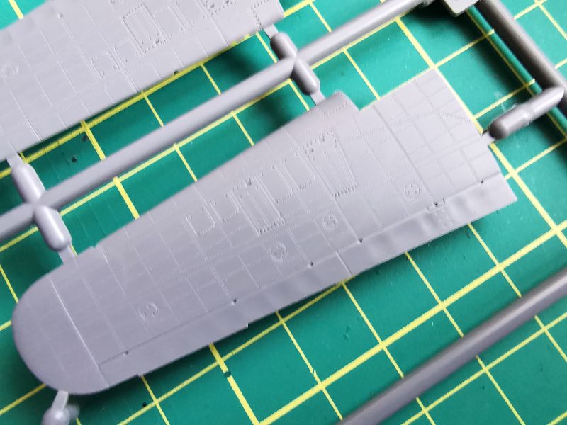 Opracowano je w sposób identyczny, jeśli chodzi o sposób odwzorowania powierzchni, czyli linie podziału, szwy nitowe. Na nowo natomiast wykonano natomiast pokrywy paneli inspekcyjnych karabinów maszynowych, lufy tychże karabinów oraz pokrywy wyrzutników łusek, które wklejamy w dolne połówki skrzydeł. Nie są to jednak wszystkie różnice. Wypraski, jak pamiętamy zawierają sporo alternatywnych części, takich jak kołpaki śmigieł, osłony kabiny czy tablice przyrządów. Sporo z nich użyjemy właśnie do budowy obu modeli wchodzących w skład zestawu. Producent uwzględnił tu nie tylko różnice pomiędzy poszczególnymi odmianami, ale także konfigurację poszczególnych egzemplarzy, dlatego też przy wyborze malowania musimy zwrócić uwagę na informacje zawarte w poszczególnych rysunkach instrukcyjnych.