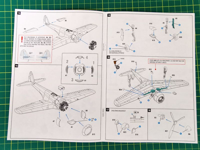 Sama instrukcja oczywiście też nie odbiega niczym od tych, które były dołączane do wcześniejszych modeli tego producenta. Tradycyjnie zachęcam zwłaszcza tych młodszych i bardziej niecierpliwych do jej wnikliwego i dokładnego przestudiowania, zanim pierwsze części zostaną wycięte z ramek. Poszczególne egzemplarze różnią się pomiędzy sobą konfiguracją – to coś podciąć, tu zaszpachlować jakiś niepotrzebny panel. Są to niewielkie różnice, ale są. O błąd nie trudno i lepiej go uniknąć zawczasu.