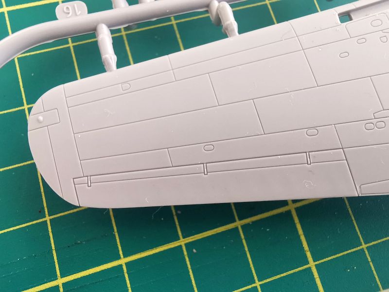 Linie podziału blach są oczywiście wgłębne, delikatne, równe i co ważne dość głębokie. Ktoś mądrze zwrócił na to uwagę, bo bez problemu można pomalować model z użyciem podkładu i będzie możliwość bezstresowego zapuszczania linii waschem lub akcentowania ich w inny sposób. Producent tradycyjnie odpuścił sobie nitowanie modelu i wykonywanie powierzchni sterowych jako osobnych elementów. Te rzeczy jeśli chcemy, musimy wykonać we własnym zakresie. Warto też zwrócić uwagę na delikatną fakturę powierzchni wewnętrznych na burtach kadłuba w rejonie kabiny pilota oraz jej podłogę umieszczoną w górnej połówce płata. Arma Hobby stosuje ten patent nie pierwszy raz.