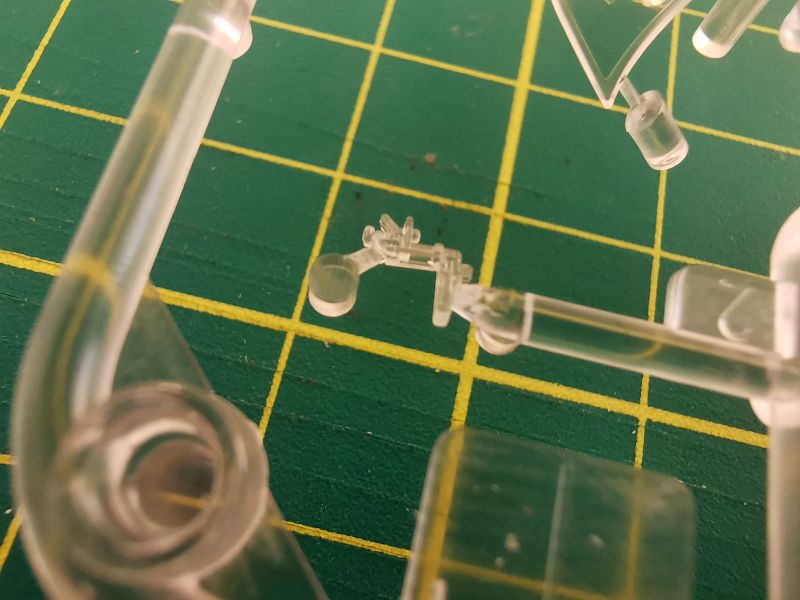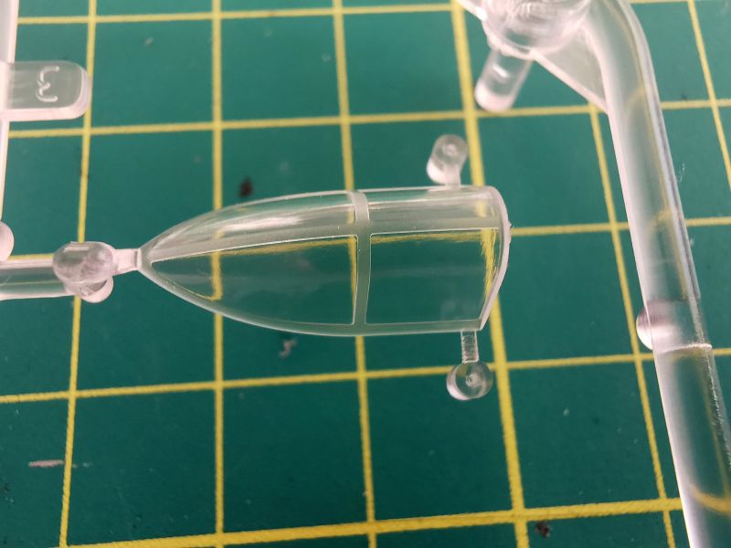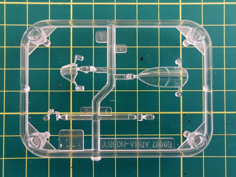 Oszklenie to niewielka ramka. Znajdziemy na niej to wszystko, co wymaga użycia przezroczystego tworzywa – osłonę kabiny, celownik oraz klosz reflektora do lądowania. Osłona kabiny tradycyjnie dzielona i jest możliwe wykonanie jej w pozycji otwartej, zresztą jest to jak najbardziej uzasadnione w uwagi na jego bogate wyposażenie. Co ciekawe, w zestawie znajdziemy dwa typy zagłówka, przy czym niezależnie od wyboru opcji malowania użyjemy tylko późnego typu. Oznacza to, że Arma nie powiedziała w temacie Hayabusy ostatniego słowa. Sama jakość szkła jest bardzo dobra, ramy wykonane w sposób wyraźny i równy, zaś do jego przejrzystości i grubości nie można się w żaden sposób przyczepić.
