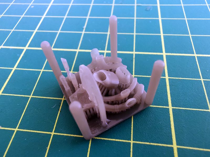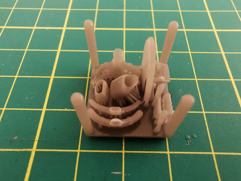 Jak wyszły te drobiazgi? Wystarczy spojrzeć na tablicę przyrządów oraz wręgę wraz z fotelem. Na pierwszy rzut oka, zdjęcia mogą sugerować, że to model w skali 1/48 Nie, nic bardziej mylnego, to model w skali 1/72. Także obie gwiazdy silnika biją po oczach delikatnym i wyraźnym detalem, co powinno zaprocentować po prawidłowym sklejeniu i pomalowaniu tych drobiazgów.