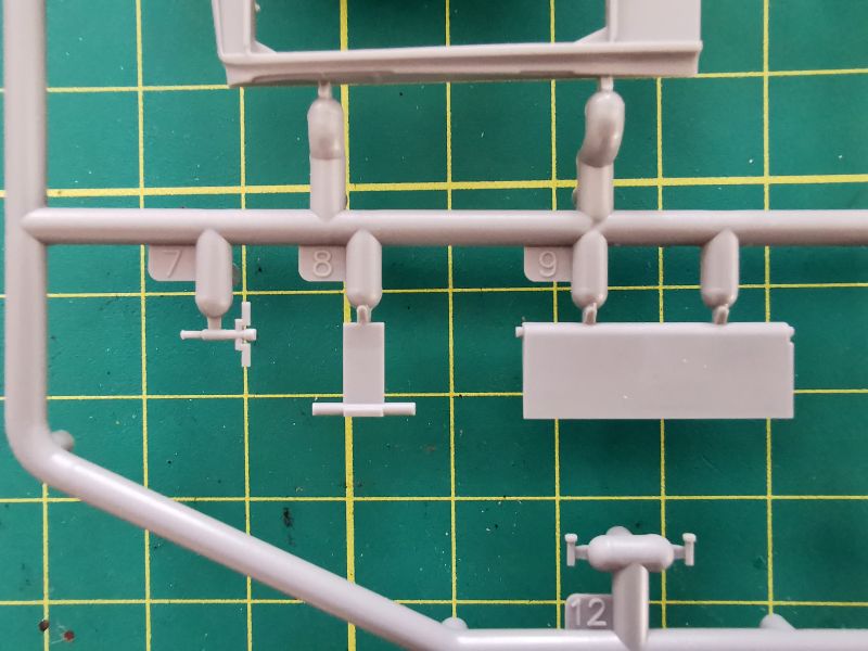 Nowością jest natomiast wypraska oznaczona jako „B1”. Na niej znalazł się centropłat, opancerzona kabina załogi oraz jej dość skromne wyposażenie. Nie dziwię się zresztą, bo okienka w kabinie przypominają raczej szczeliny strzeleckie w jakim bunkrze na Wale Atlantyckim. Nie zmienia to jednak faktu, że wszystko, co znajduje się na tej wyprasce, jest wykonane w taki sam sposób jak pozostałe wypraski, opisane powyżej. Czyli bardzo dobrze.