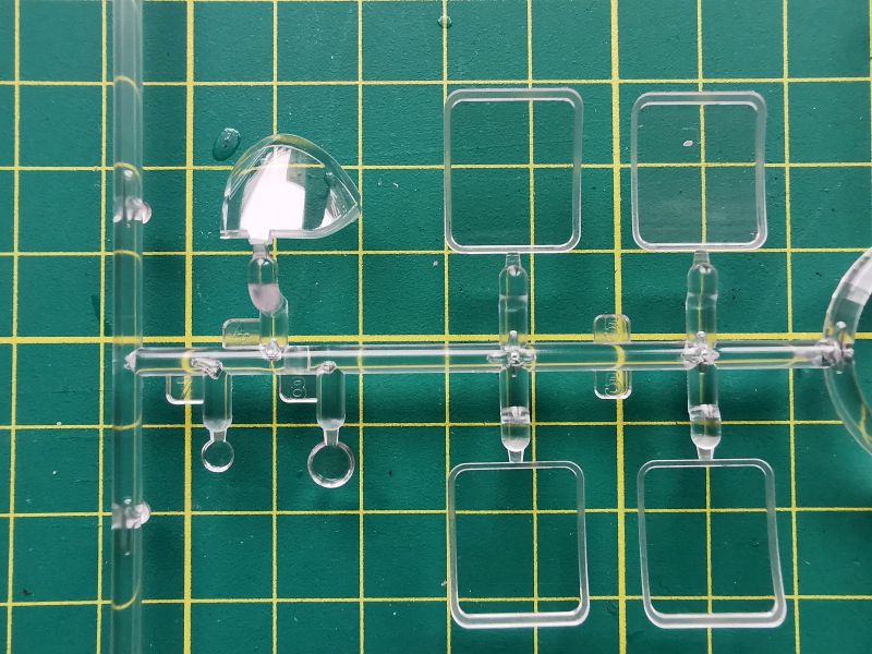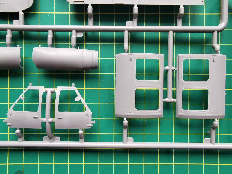 Oszklenie, składa się oczywiście z okien, a jest ich dość sporo, ale także kloszy różnego rodzaju lamp i reflektorów. Jak widać wszystko co znajduje się na tej ramce wykonano, tak jak ICM zdążyło nas przyzwyczaić. Na bardzo wysokim poziomie. Szyby mają doskonałą przejrzystość i to co znajdzie się pod nimi będzie równie doskonale widoczne. Warto zatem przyłożyć się do wykonania wnętrza modelu i uważać podczas montażu oszklenia i później malowania, żeby nie pobrudzić szyb klejem lub farbą.