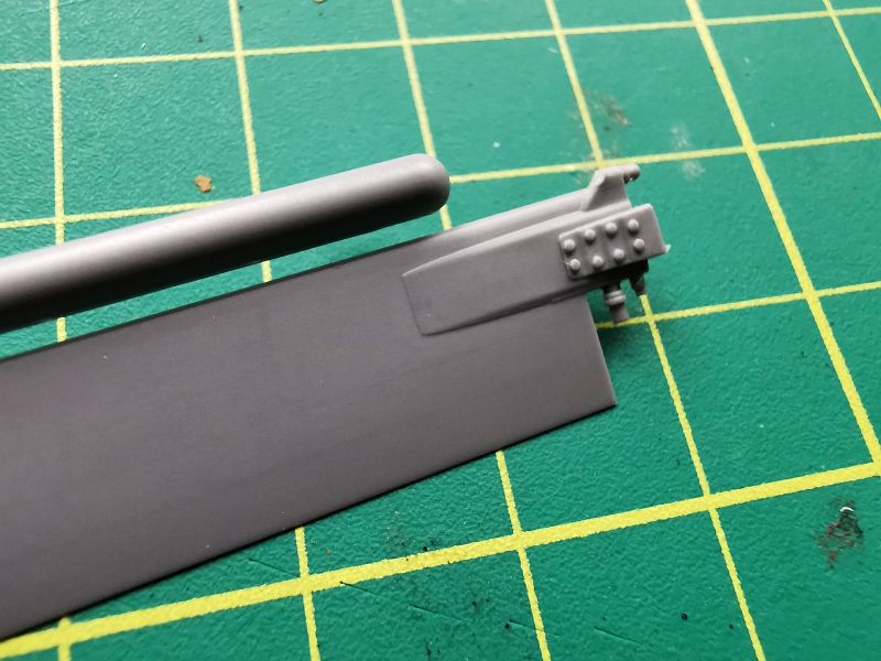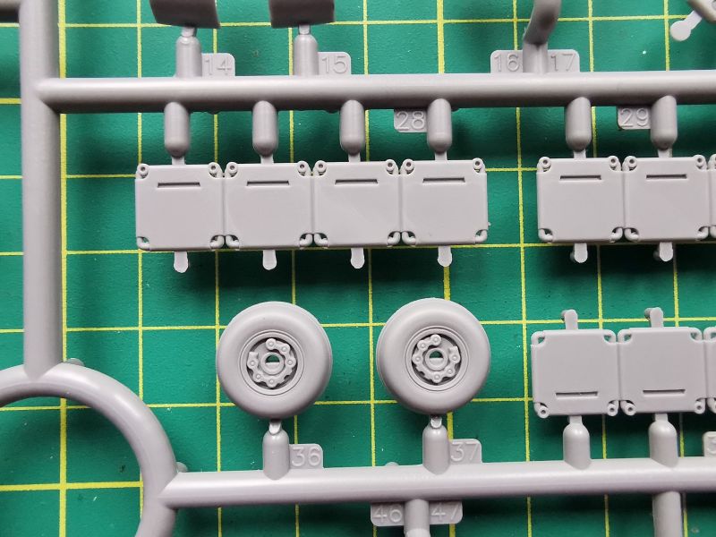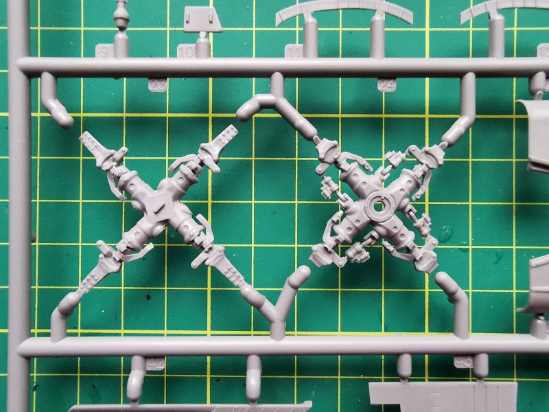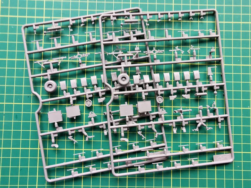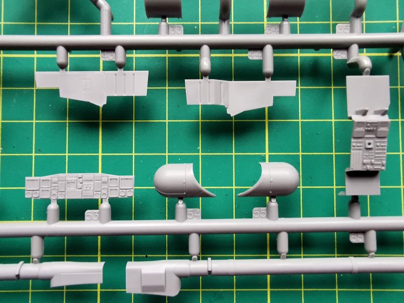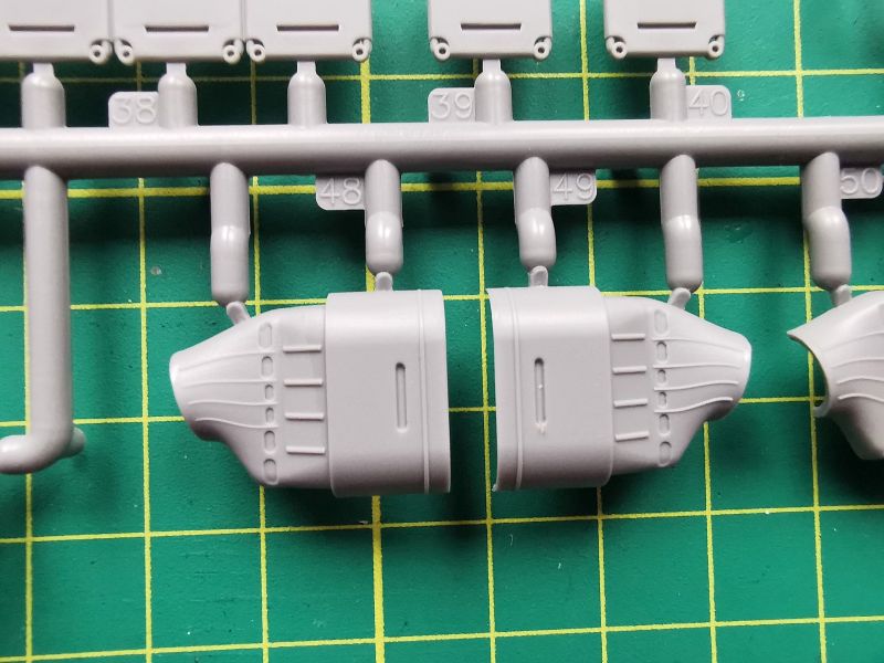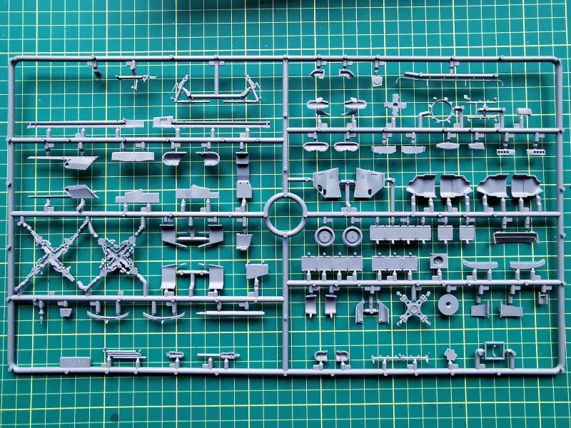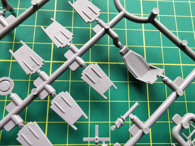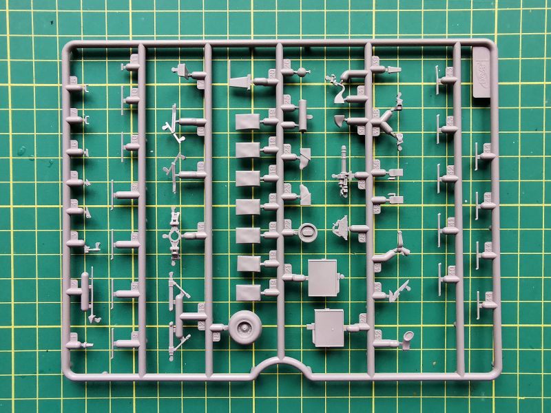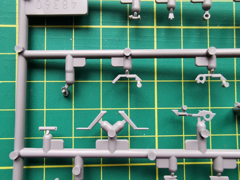 Tego typu elementy znalazły się na dwóch mniejszych wypraskach, przy czym też nie ma tu wyraźnego rozgraniczenia na ich przeznaczenie, na miejsce ich zamontowania. Na ramce „D” znajdziemy zarówno detale wnętrza, jak i różne drobiazgi na zamontowania na zewnątrz kadłuba…