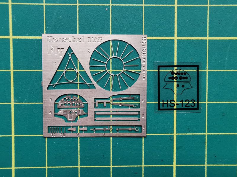 Oszklenie w tym modelu ogranicza się do wiatrochronu, który można oczywiście użyć, ale wymaga on przepolerowania. Bardziej ambitni mogą pokusić się o wykonanie go od podstaw. W najwcześniejszych produkcjach tego typu oszklenie to było tak zwane "Vacu", czyli formowana próżniowo przezroczysta wytłoczka. Wyzwaniem było prwiadłowe wycięcie elementów i wklejenie na właściwe miejsce w modelu. W wielu modelach wykonanych w technologii short –run standardem były i są do dziś fototrawione blaszki. Zawierały one szereg drobnych i precyzyjnych detali, których nie można było wykonać z tworzywa z uwagi na ograniczenia technologiczne. W naszym przypadku są to pasy pilota, tablica przyrządów drobne detale wyposażenia kokpitu oraz silnika. W zestawie jest także klisza z zegarami, którą podkleimy pomalowaną tablicę z blaszki, przed jej zamocowaniem w kabinie