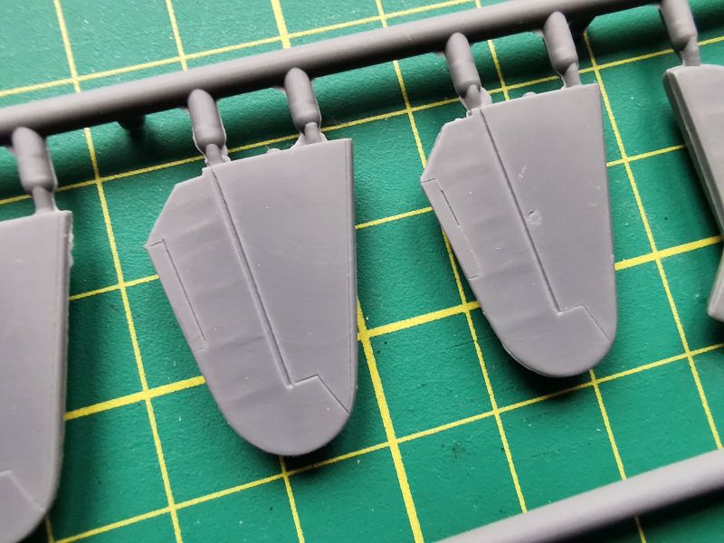 Po wycięciu elementów od tego czegoś udającego ramkę wtryskową, wszystkie krawędzie należy dokładnie obrobić najpierw pilnikiem a potem papierem lub gąbkami ściernymi. Także ładnie wykonana faktura a ster kierunku jest osobnym elementem. Podobnie jak w przypadku usterzenia poziomego producent przewidział dwa warianty. Dolny płat jest za to tylko jeden.