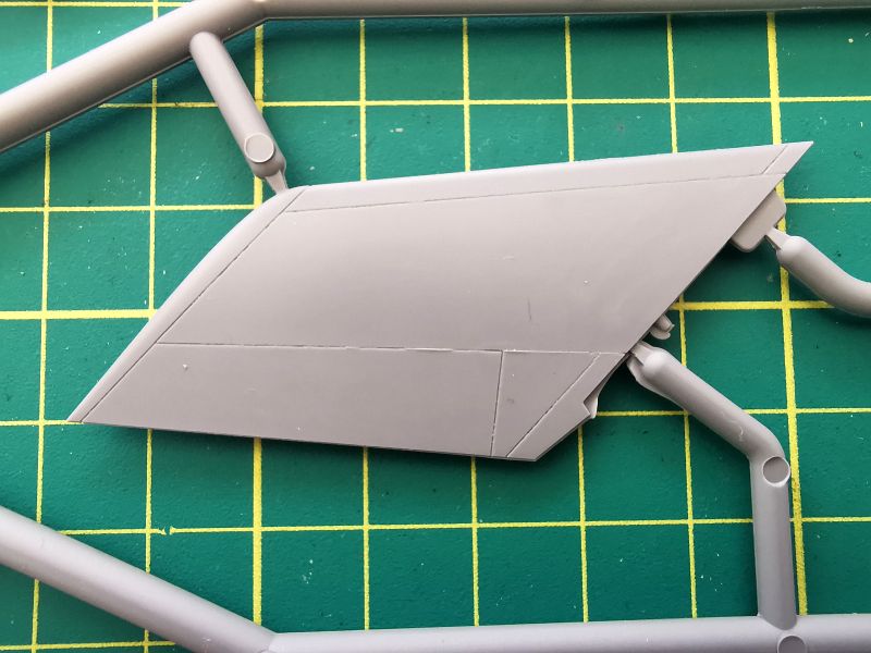 Skrzydła umieszczone na ramce „B” mają klasyczny podział i konstrukcję. Lotki i klapy wykonano jako integralne elementy, jak komuś marzą się klapy otwarte, konieczne będą samodzielne przeróbki, chyba że za jakiś czas pojawią się zestawy do waloryzacji. Faktura powierzchni wykonana tak samo jak na kadłubie. Ja osobiście zastrzeżeń nie zgłaszam.