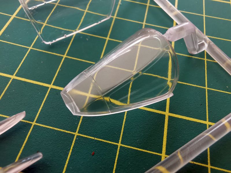 Ramka z oszkleniem jest stosunkowo niewielka. Znajduje się na niej dzielona osłona kabiny oraz klosze lamp pozycyjnych, reflektorów do lądowania i szyba celownika. Oszklenie nie jest specjalnie za grube ani też przesadnie cienkie. Po prostu porządnie wykonane o dobrej przejrzystości, nie dające efektu soczewki.