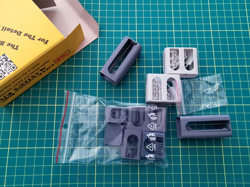 Można teraz przejść do kwestii najważniejszych, czyli co wyróżnia zestawy „Hi-Tech” od innych. Oczywiście zawartość dodatków. Jeszcze kilka lat temu spodziewalibyśmy się sporej fototrawionej blaszki i słusznych rozmiarów torebki z żywicznymi odlewami. Teraz oba typy dodatków zostały zastąpione przez wydruki 3D. Zapakowano je w tekturowe pudełko na którym widnieją logotypy Special Hobby oraz CMK, lecz za wykonanie projektu elementów odpowiada firma MCC i trzeba przyznać, że zrobiła to bardzo dobrze. Po pierwsze elementy są doskonale zabezpieczone przed uszkodzeniem, a to za pomocą bocznych ścianek w Wyrykach, zaś suporty są bardzo cienkie i delikatne, co ułatwi wycinanie elementów. Część wydruków zapakowano w foliowe torebki, część włożono luzem, są jednak one tak dopasowane do rozmiarów pudełka, że nie będą się przesuwać.