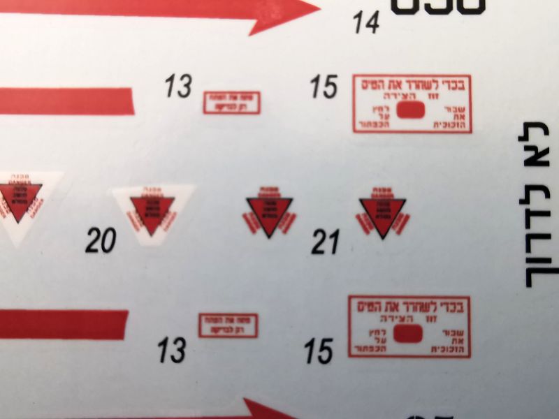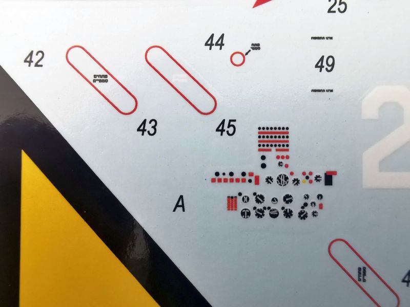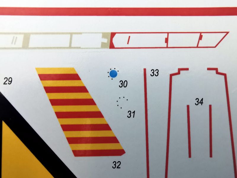 Dość sporym arkuszem, bo proponowane przez producenta malowania zawierają sporo elementów graficznych o dużej powierzchni. Do tego należy dodać znaki przynależności państwowej, godła, numery oraz całkiem sporą ilość napisów ekspolatacyjnych. Drukiem kalkomanii zajął się Eduard, więc zwracam uwagę, że technologia jest nieco inna. Po ich nałożeniu, trzeba odczekać dobę aby zdjąć film. Należy to robić bardzo ostrożnie, ale efekt jest naprawdę dobry. Wiem, bo miałem możliwość sprawdzenia ich w praktyce.