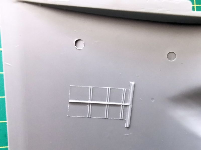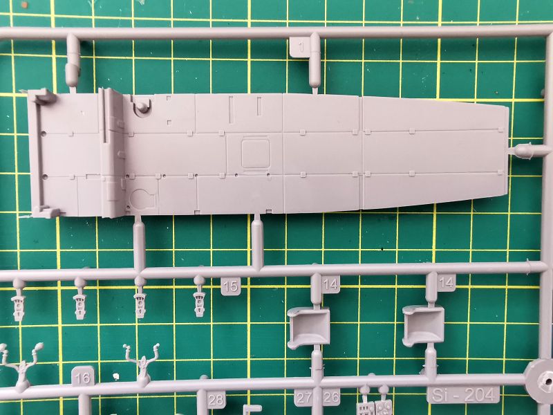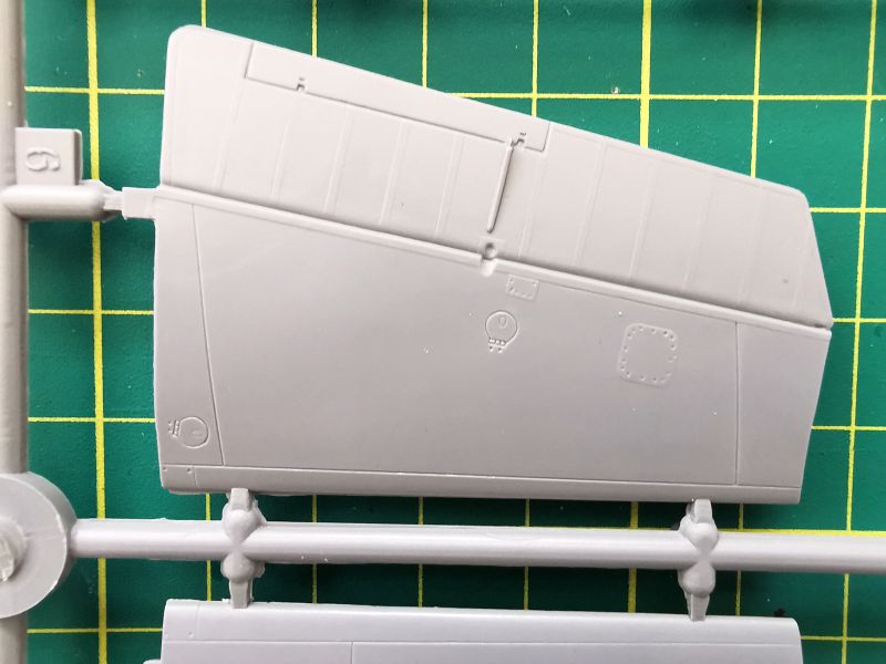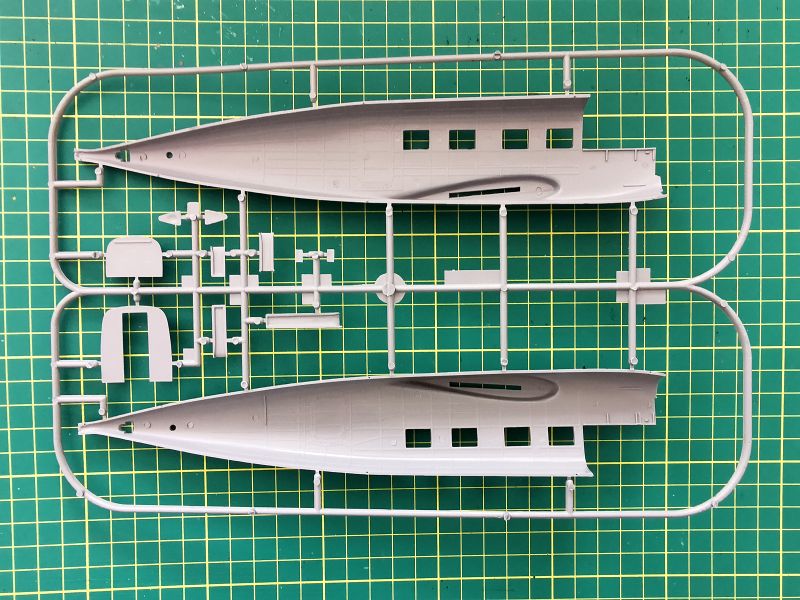 Na ramce „A” znajdują się połówki kadłuba oraz trochę detali wnętrza. Trudno jest mi stwierdzić, czy model został opracowany cyfrowo, czy w sposób klasyczny, co jest bardziej prawdopodobne, biorąc pod uwagę datę wydania pierwszego zestawu. Jednak to, co zobaczyłem nastroiło mnie pozytywnie do tego zestawu. Delikatne i równe linie podziału, w niektórych miejscach także nity i kapitalna faktura wnętrza kadłuba, która jednak nam może zginąć pod ciemnoszarym kolorem wnętrza. Możemy wykonać drzwi wejściowe w pozycji otwartej, ale w tym celu musimy wyciąć otwór w kadłubie.
