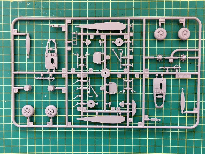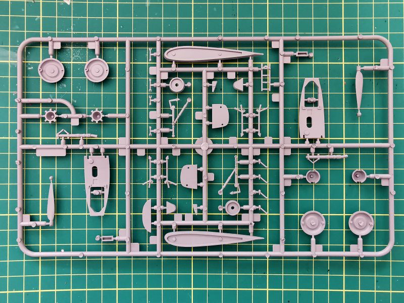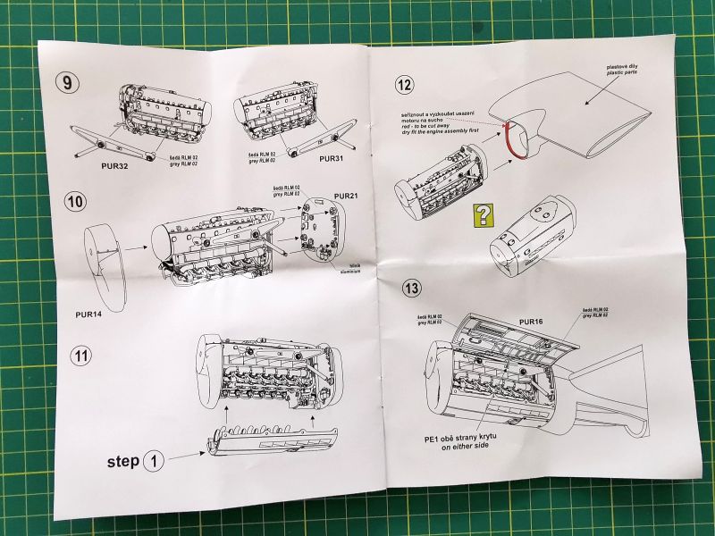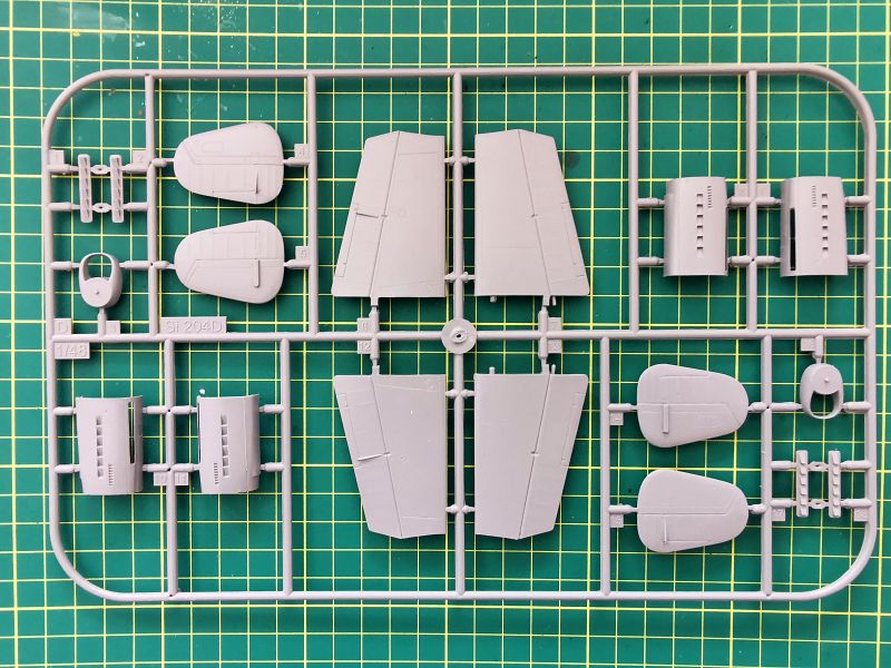 W skład zestawu wchodzi kilkanaście odlewów z jasnoszarej żywicy oraz niewielka fototrawiona blaszka. Jedną z nich możemy wykonać z podniesionymi pokrywami bocznymi, żeby wyeksponować silnik, drugą zaś zamkniętą. Silnik jednak w nie jest, a właściwie jego dolna część, która będzie widoczna przez otwór z przodu. W tym miejscu jednak zachęcałbym do zadania sobie trochę trudu, żeby wyłapać ewentualne różnice pomiędzy samolotami budowanymi w Niemczech i Czechosłowacji a tymi budowanymi we Francji. Nie natknąłem się co prawda na informacje o innych, niż Argus AS.410 jednostkach napędowych, ale ostrożności w tym zakresie nigdy za wiele.