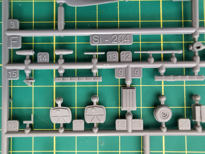 Oszklenie jest wspólne dla wszystkich modeli Si.204 i jego pochodnych. To ramka „K”. W zależności od wybranej wersji, wykorzystamy to, co podpowiada nam instrukcja. Konstrukcja samolotu, jego przeszklony nos sprawia, że te właśnie elementy są bardzo ważne. Gdyby zostały źle wykonane na etapie produkcji, odbiłoby to się na jakości całego zestawu. Special Hobby wyszło z tego obronną ręką. Ramy oszklenia są równe i wyraźne. Przejrzystość także nie budzi zastrzeżeń. Trzeba będzie jednak bardzo uważać przy malowaniu tej szklarni, bo tu najsłabszym ogniwem może się okazać nie producent, a modelarz.