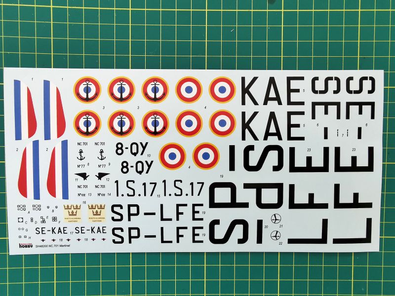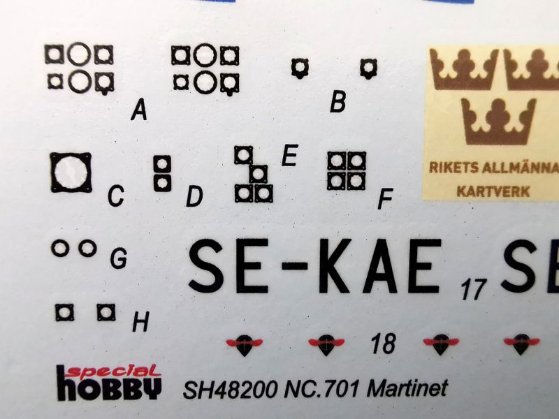 Niezależnie od wybranej wersji, do budowy użyjemy zawartości niewielkiej blaszki fototrawionej oraz masek które jednak nie służą do malowania oszklenia, ale do dokonania kilku przeróbek części nosowej samolotu w przypadku wyboru wersji szwedzkiej. Musimy delikatnie usunąć część ram oszklenia, a za pomocą tych masek wytrasować nowe. Do tematu masek jeszcze wrócimy.
