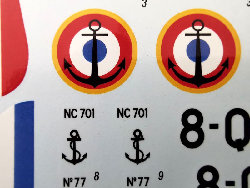 Z uwagi na skalę jak i gabaryty modelu został on zapakowany w sporych rozmiarów pudło. Wieko zdobi piękny boxart przedstawiający samolot francuskiego lotnictwa morskiego, zresztą jedną z opcji malowania. Na wieku znajdziemy zresztą więcej informacji, jakie opcje mamy do wyboru. W pudełku znajdziemy dwie okazałe, zaklejane torebki z wypraskami, kalkomanię, dodatki w postaci małej blaszki fototrawionej i wydruku 3D. Ramek wtryskowych jest w sumie dziesięć. Siedem wykonano szarego tworzywa, dwie także mają szarą barwę ale o innym odcieniu. Jest oczywiście także ramka przezroczysta.