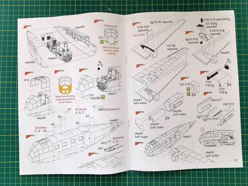 Jest to kolorowa, wydana na popierze kredowym broszura, w której znajdziemy wszystko, zarówno rys historyczny samolotu, czytelne rysunki montażowe oraz materiały reklamowe, promujące inne wyroby producenta a także firmy CMK. Co do tego ostatniego, w instrukcji znajdziemy także swoistą „listę zakupów” czyli wykaz dodatków oferowanych przez CMK właśnie do naszego modelu. Część z nich przedstawię poniżej.