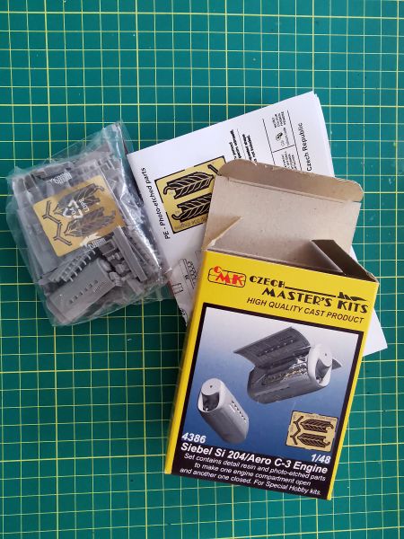 Można teraz przedstawić „dobra luksusowe” czyli żywiczne dodatki do waloryzacji modelu. Zacznę odbogatego zestawu oferowanego przez CMK. Nosi on nazwę „Siebel Si 204/Aero C-3 Engine”. Czyli po prostu silniki.