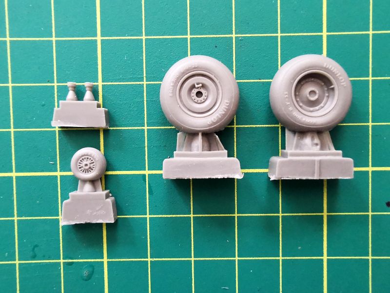 Dwa kolejne zestawy to także zestawy „Quick & Easy” wydane w identyczny sposób do omówionego powyżej. Nie są to jednak zestawy do waloryzacji w dosłownym tego słowa znaczeniu, ale zamienniki w postaci kół i charakterystycznych kołpaków śmigieł. Te ostatnie nie znajdą zastosowania we francuskiej odmianie tego samolotu z uwagi na zupełnie inny typ śmigieł a co za tym idzie także kołpaków. Także kołpaki poczekają sobie na inną okoliczność, zaś koła na pewno wykorzystam. Już kilkakrotnie montowałem je w różnych modelach, zawsze ze znakomitym efektem.