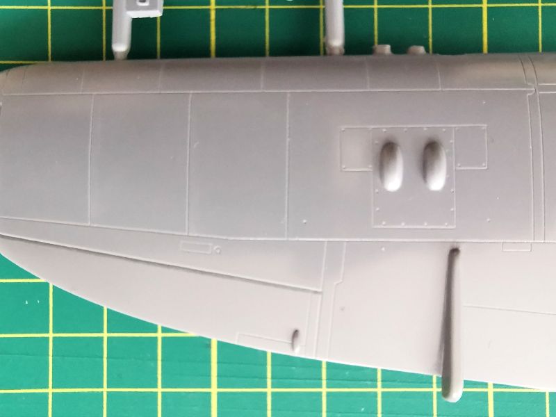 Ponieważ model jest short runem, elementy polistyrenowe zostały uzupełnione o fototrawione i żywiczne dodatki. Na blaszce umieszczono jedynie dwa elementy, są to podstawy wyrzutni niekierowanych pocisków rakietowych. Przykleimy je do dolnych powierzchni skrzydeł. Jako odlewy żywiczne wykonano luki podwozia, kolektory spalin oraz wloty powietrza, nie wiem co prawda do czego, ale podejrzewam że do gaźnika, sądząc po ich umiejscowieniu. Lukom podwozia można zaaplikować kilka kabli i podobnych bajerów, jak ktoś posiada dokumentację. Rury wydechowe wymagają jedynie poprawnego pomalowania i kilku zabiegów artystycznych.