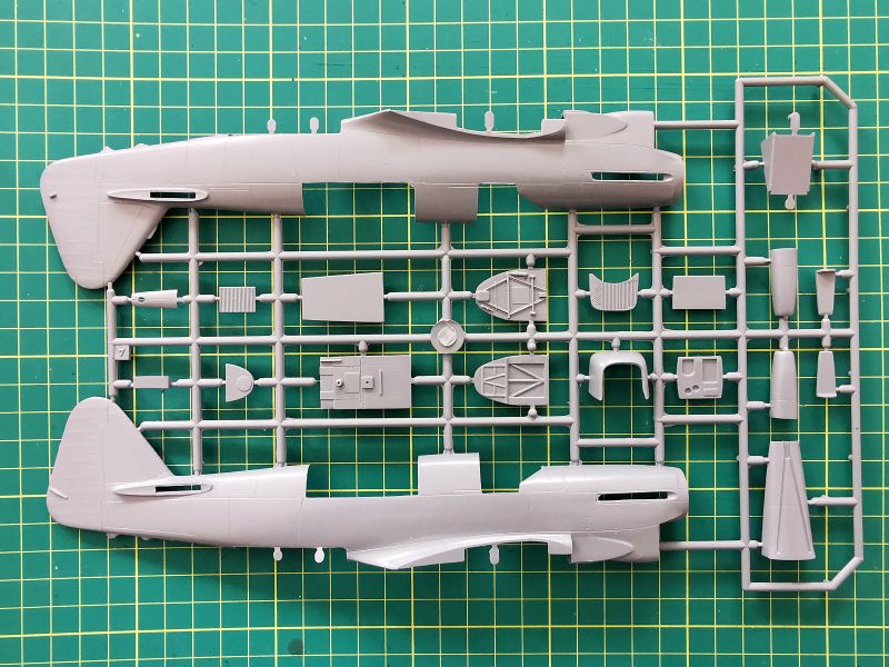 Jest ono średniej wielkości, zdobi je bardzo efektowny boxart przedstawiający lądownie Firefly na pokładzie jednego z lotniskowców Royal Navy. Szata graficzna nie jest najnowsza, ponieważ wybrałem sobie zestaw, który wydany został po raz pierwszy w 2013 r. Wtedy to bowiem Special Hobby wypuściła aż sześć zestawów umożliwiających budowę modelu tego samolotu. Kolejne dwa pojawiły się w 2014 i 2015 r. W pudełku znajdziemy sporą foliową, zaklejaną torebkę w której znajdziemy wypraski, dodatki oraz kalkomanię. Całości dopełnia instrukcja. Model to short run, ale wydany już w nieco nowszej konwencji. Podstawę stanowią wypraski, przy czym część form wykonano klasycznymi metodami, ale już część za pomocą technologii cyfrowych. Mamy też detale fototrawione i żywiczne.