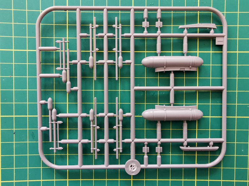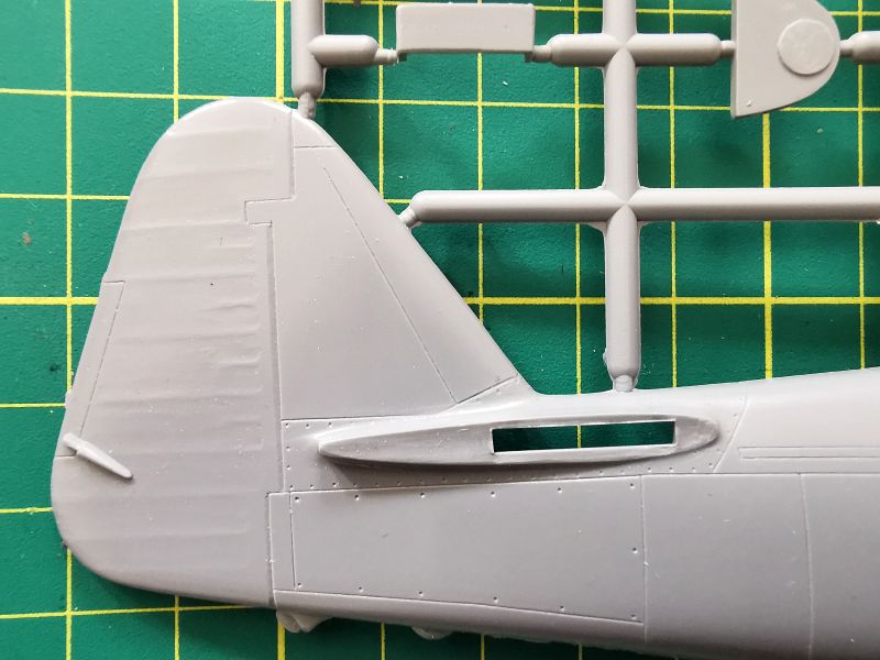 Dlatego, że większość wyposażenia znajduje się na kolejnych dwóch ramkach. Pierwsza z nich jest widoczna na powyższych zdjęciach. Poza detalami kokpitu znajdziemy tam także usterzenie poziome, dwa typy śmigieł, z których wykorzystamy trójłopatowe, oraz kilka innych drobnych detali. Ta ramka zawiera detale do różnych wersji samolotu i co wykorzystamy, zależy od tego, którą wersję chcemy budować. Ta ramka także powstała przy zastosowaniu klasycznych technologii o czym świadczy sposób wykonania usterzenia poziomego. Stateczniki składają się z górnych i dolnych połówek.