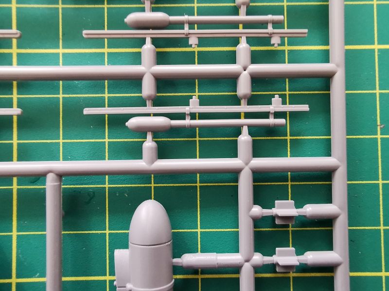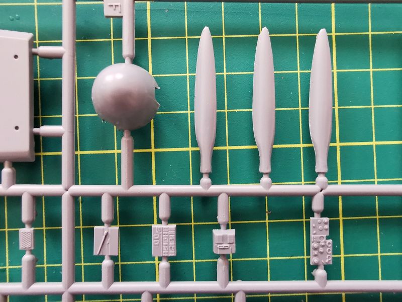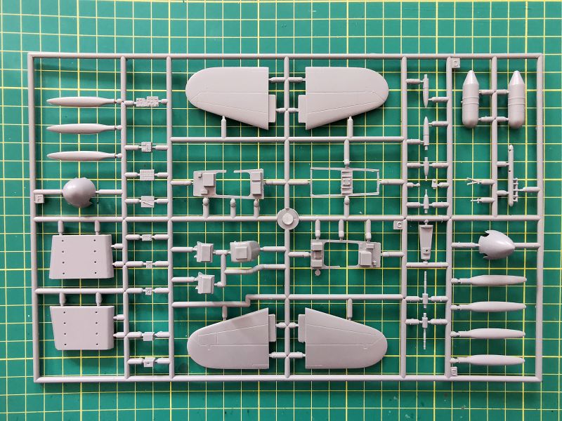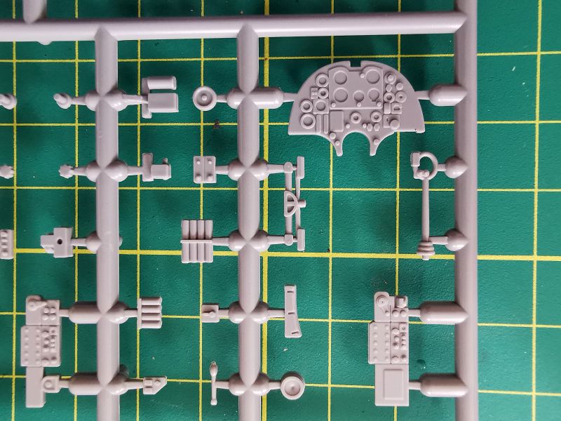 Kolejne trzy ramki zaprojektowano już cyfrowo. Pierwsza z nich zawiera wszelkie drobne detale kokpitu, podwozia, lufy działek, kilku typów i piasty śmigieł. Jest ona podobnie jak poprzednia, uniwersalna przeznaczona dla różnych wersji samolotu. Muszę przyznać, że przyjemnie się to ogląda, kokpit i podwozie to bardzo mocne punkty tego zestawu.