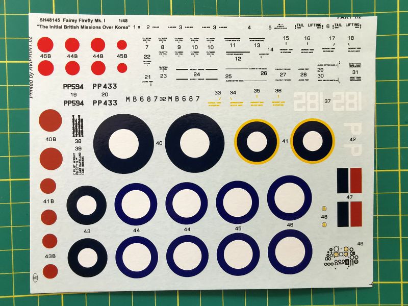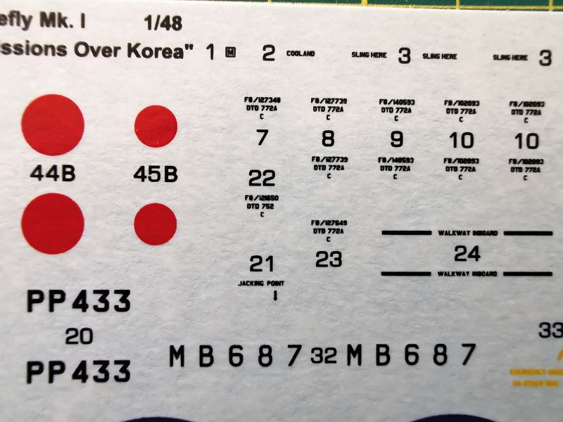 Do dyspozycji mamy cztery warianty malowania, wszystkie jak stanowi tytuł zestawu dotyczą samolotów, które wykonywały pierwsze brytyjskie misje bojowe w wojnie koreańskiej. Wszystkie z jednego dywizjonu bazującego w 1950 r. na pokładzie lotniskowca HMS „Triumph”. Trzy malowania niemal identyczne – ciemno szary i sky, zaś jedno nawiązujące do klasyki FAA z lat II wojny światowej.