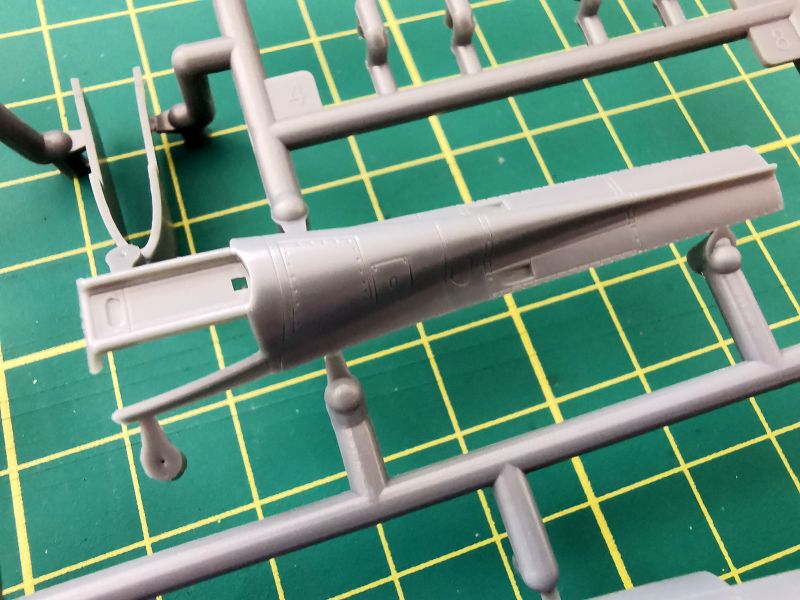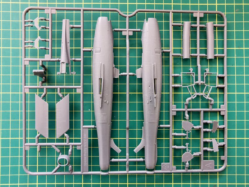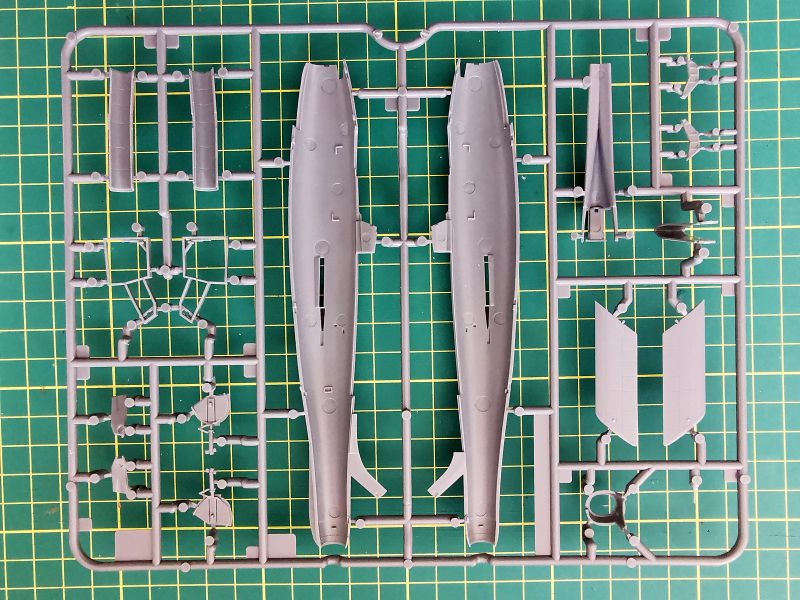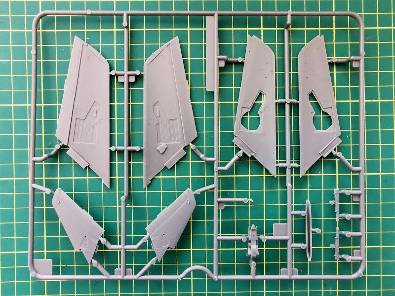 Zestaw składa się z czterech wyprasek z szaroniebieskiego plastiku, co już powinno dawać do myślenia. Tak, ten model podobnie jak Super Mystère wydany nie tak dawno w skali 1/48 jest modelem zaprojektowanym całkowicie z użyciem technologii cyfrowej. Detale bardzo delikatne i wyraźne zarazem, wystarczy spojrzeć na połówki kadłuba i ich fakturę, czy detale podwozia, które też się tu znajdują. Co ciekawe, w przypadku komór podwozia głównego producent zastosował ten sam patent, co w Super Mystère, czyli wklejane w skrzydła szkielety komór. Jestem bardzo ciekaw, jak sprawdzi się to w praktyce. Może to ukłon w kierunku tych, co lubią odtwarzać imitacje różnego rodzaju instalacji, czyli kłaść kabelki?