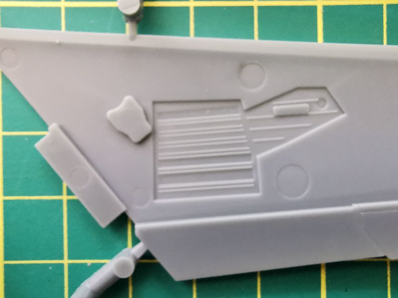 Po wewnętrznej stronie górnych połówek skrzydeł znajdują się miejsca, gdzie należy je wkleić, z całkiem ładnie wykonaną fakturą. Podzespoły skrzydeł znajdują się na kolejnej ramce i mają klasyczny podział, nie mają wyodrębnionych jako osobnych elementów klap oraz lotek. Nie zmienia to jednak faktu, że są opracowane równie finezyjnie jak kadłub i inne detale znajdujące się na ramce wraz z nim. Baczny obserwator zwróci pewnie uwagę na dwa rodzaje usterzenia pionowego. Nie są to jednak dwie połówki, które należy z sobą połączyć, ale dwa osobne elementy, które wykorzystamy w zależności od wyboru wersji malowania. Świadczy to także o odejściu od klasycznego projektowania i wykonywania forma na rzecz technologii cyfrowej.