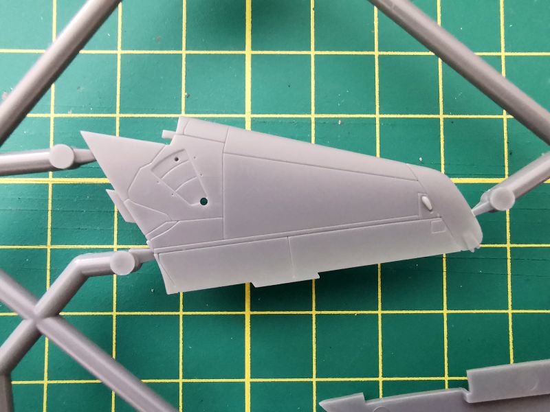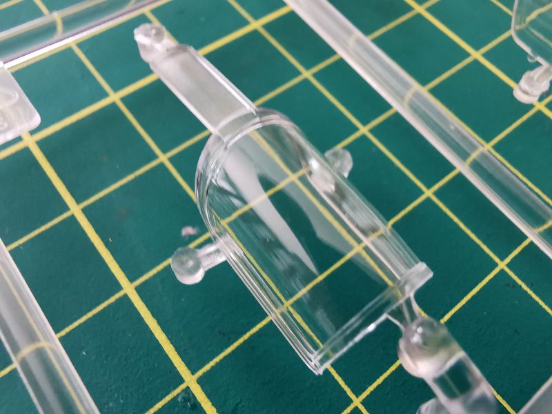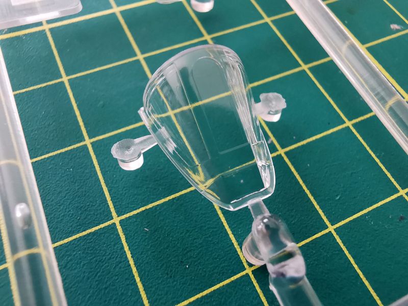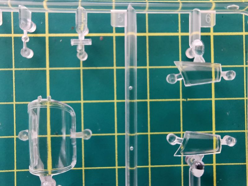 Oszklenie zwyczajowo uzupełnia podstawowe elementy zestawu. Jest to znaczenie mniejsza wypraska, na której znajdziemy dzieloną osłonę kabiny pilota, szybę celownika, reflektor do lądowania oraz klosz lampy pozycyjnej umieszczonej w napływie statecznika pionowego.