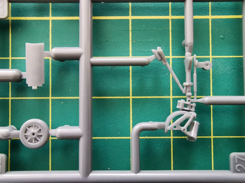 Następna ramka to wszelkie możliwe drobne detale, które wykorzystamy w pracach nad kokpitem podwoziem oraz w jeszcze innych miejscach. W sumie kilkadziesiąt precyzyjnie wykonanych elementów, z których pominiemy niekierowane pociski rakietowe oraz dwa warianty foteli wyrzucanych, w zestawie są ich trzy.