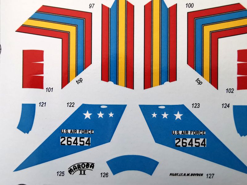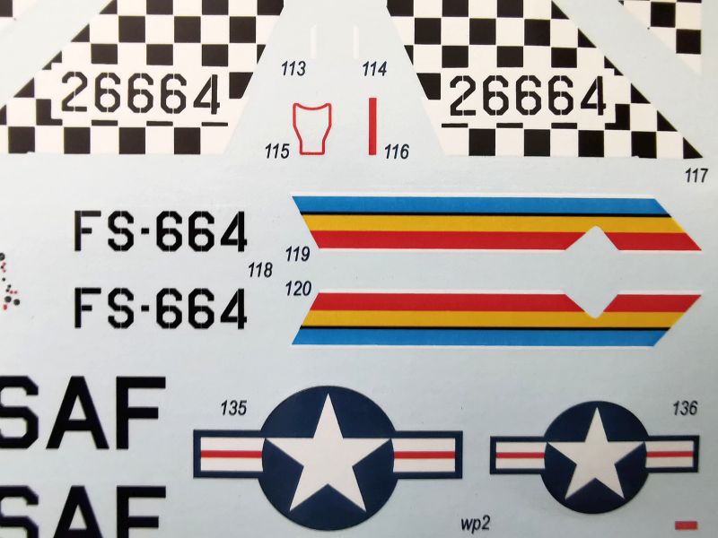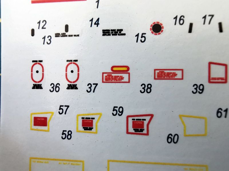 Ponieważ zestaw nie ma dodatków w postaci blaszek, żywic czy ostatnio coraz bardziej popularnych wydruków 3D przejdę od razu do omawiania kalkomanii. Jak widać jest to dość spory arkusz, którego nie powstydziłby się nie jeden model w skali 1/48.