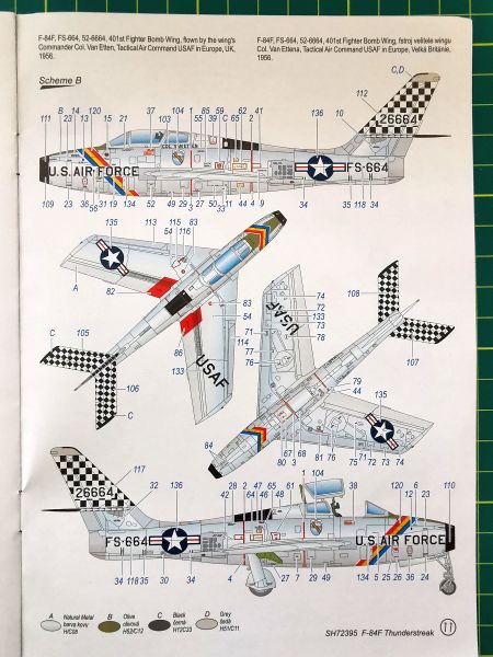 Wszystkie schematy malowania pokazano, a jakże tradycyjnie w formie kolorowych plansz na końcowych stronach instrukcji. Wszystkie propozycje to samoloty służące w USAAF, przy czym dwa pierwsze warianty to samoloty służące w Europie, zaś trzeci już w USA. Wszystkie one są bardzo efektowne i ciekawe, wybór jednego z nich może być trudny.
