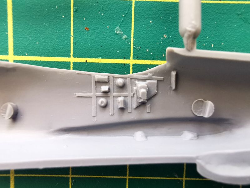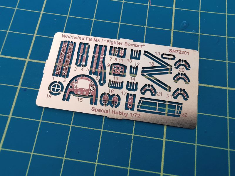Już wcześniej była mowa o tym, że ten model to klasyczny short run, czyli części z polistyrenu uzupełnione sporą gamą dodatków. Można także pokusić się o stwierdzenie, iż w przypadku nowej edycji Wirlwinda klasyka styka się z nowoczesnością. Tak klasyka to blaszka fototrawiona tablica przyrządów, pasami pilota, grillami chłodnic i całą masą drobiazgów głownie w kokpicie. Jej uzupełnieniem jest klisza z zegarami.