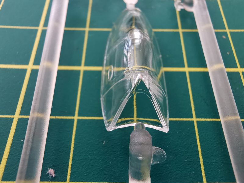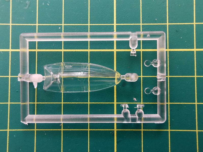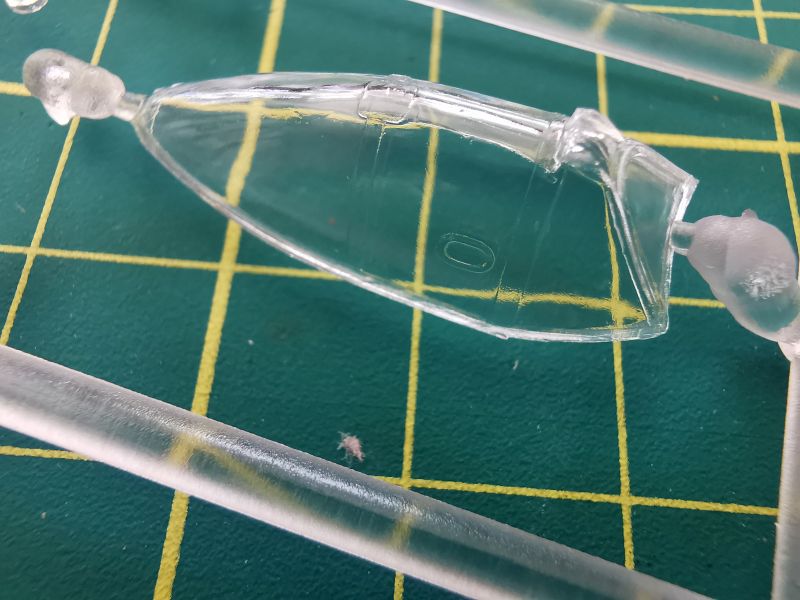 Oszklenie to pojedyncza, niewielka ramka na której znajduje się osłona oraz klosze lamp pozycyjnych i reflektorów. Niestety osłona kabiny pilota nie jest dzielona i jeżeli ładnie wyszedł nam kokpit, to musimy rozważyć pocięcie owej osłony, aby lepiej ów kokpit wyeksponować. Osłon jest co prawda wykonana poprawnie, ma niezłą przejrzystość i nie soczewkuje, ale jednak co otwarta, to otwarta.