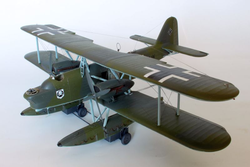 Muszę przyznać, że model Heinkla He-59 po swoistej kuracji odmładzającej wygląda bardzo zachęcająco. Budowa co prawda nie będzie łatwa, ale na pewno łatwiejsza niż w przypadku poprzedniej edycji, o której tyle razy wspominałem. Na ten model warto zwrócić uwagę z jeszcze z jednego powodu. Właśnie Heinkle He – 59 a nie Stukasy w dniu 3 września 1939 r. zatopiły w porcie wojennym w Helu stawiacz min ORP „Gryf” i kanonierkę ORP „Generał Haller” w porcie rybackim. Jeden z czterech atakujących samolotów został zestrzelony w bardzo nietypowy sposób – z karabinu maszynowego umieszczonego na platformie zbudowanej na wierzchołkach kilku wysokich sosen. Choćby z tego powodu warto sięgnąć po model „Krowy” jak o Heinklach mówili Obrońcy Helu.