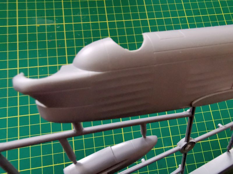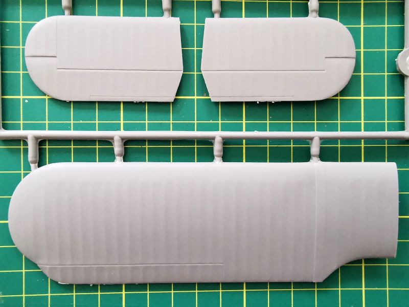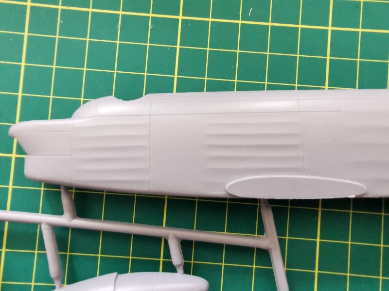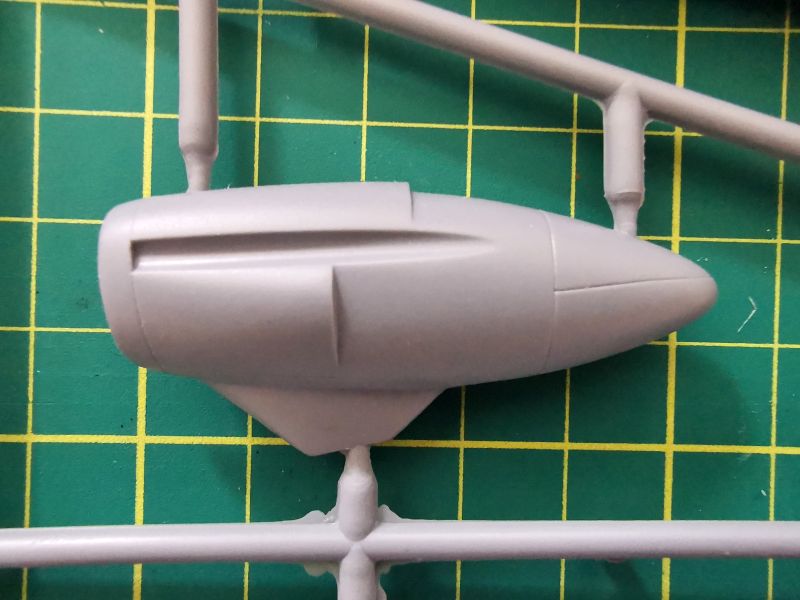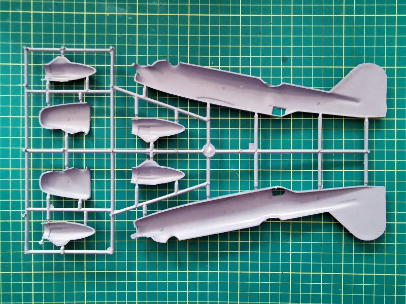 Ramki wtryskowe stanowiące podstawowe komponenty zestawu są cztery, a wykonano je z szarego tworzywa, którego producent od dawna używa do produkcji swoich modeli. Pierwsza z nich zawiera połówki kadłuba, alternatywną część nosową (której nie wykorzystamy) oraz gondole silników. Pierwsze, co zwróciło moja uwagę podczas oglądania wyprasek to gładka powierzchnia elementów, brak tarki, charakterystycznej dla poprzedniej edycji. Każdy kto miał styczność z modelami Special Hobby czy MPM sprzed przynajmniej dekady, wie o co chodzi. Faktura powierzchni krytych płótnem nie jest przekombinowana w żadną stronę (wtedy też nie była) a linie podziału wyraźne i równe. Świadczy to, że formy zostały zregenerowane. Nic natomiast nie zmieniło się w kwestii gondoli silnikowych. Nie zawierają kilku charakterystycznych szczelin, których brak może razić. Pamiętam, że pociąłem gondole piłką po liniach podziału i po wybraniu zbędnego tworzywa skleiłem z powrotem, a efekt był znacznie lepszy.