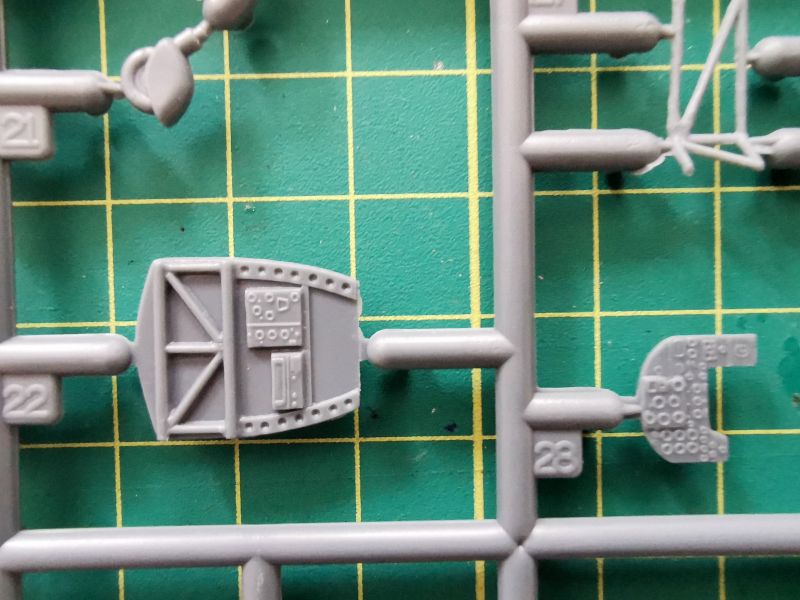 Oszklenie to nieco mniejsza ramka wtryskowa, na której znajdują się łącznie cztery elementy. Cztery dobrze wykonane elementy. Ramy równe i wyraźne, szkło dość cienkie, przejrzyste i pozbawione efektu soczewki. Special Hobby w swojej ofercie ma też maski do jego poprawnego wymalowania.