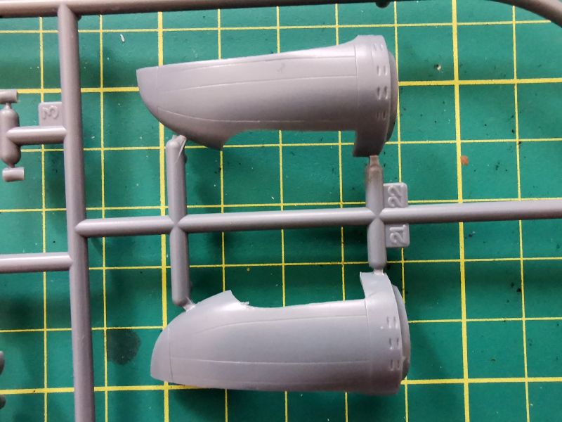 Podobnie rzecz wygląda z tym co zwykło się określać „kapsułami mocy” czyli zespołami śmigło – silnik – gondola, które znajdują się na kolejnej z ramek. Podział technologiczny to klasyka gatunku, ale z całkiem ładnie wykonanymi detalami, przynajmniej tymi na zewnątrz. Trochę pracy będą wymagały komory podwozia głównego. Po pierwsze musimy z nich usunąć ślady po wypychaczach i odtworzyć ich konstrukcję wewnętrzną. Całkiem dobrze prezentują się natomiast makiety silników. Wystarczy dokleić jakieś imitacje przewodów i będzie naprawdę super.