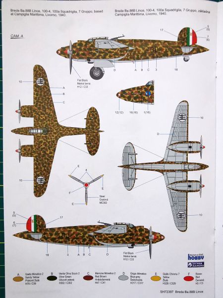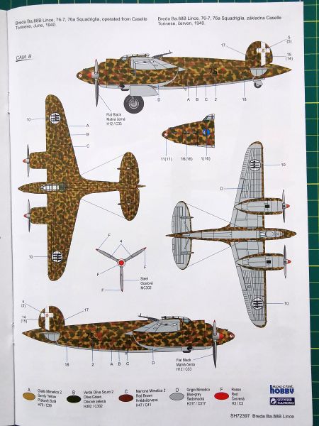 Wszystkie trzy propozycje malowania, to ten sam schemat charakterystyczny dla włoskich bombowców, ale różne jednostki. Dwie pierwsze to samoloty bazujące we Włoszech i różnice to tylko ich oznaczenia, zaś trzeci to samolot biorący udział w kampanii w Afryce Północnej, wyróżniający się znakami szybkiej identyfikacji wymalowanych na dolnych powierzchniach płatów.