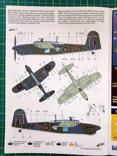 Do wyboru mamy dwie opcje malowania. Obie to maszyny z brytyjskich lotniskowców HMS "Victorius" i HMS "Furious" z kolejnych faz Operacji Tungsten, czyli działań Royal Navy przeciwko pancernikowi „Tirpitz” stacjonującemu w Kaafjord w północnej Norwegii. Oba podobne, ale wybór i tak trudny.