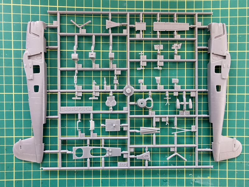 Pierwsze jego wydanie miało miejsce w 2016 r. i od tego czasu doczekało się jeszcze dwóch edycji w latach 2018 i 2019. Ta jest trzecia i jest powtórzeniem pierwszego wydania z 2016 r. Świadczy o tym użycie tego samego boxartu z dwoma lotniskowcami w tle, wzorowanym na jednym z bardziej znanych zdjęć z Morza Śródziemnego. Ale, ale, ktoś może stwierdzić, że to model znacznie starszy, bo wydany pierwszy raz pod szyldem firmy MPM. Istotnie, poprzednik obecnego Special Hobby wydał model Barracudy już w 1999 r. zaś w 2003 r. został on wydany już jako Special Hobby, ale to nie są te same zestawy. Omawiany został opracowany w 2016 r. Jest to także short run, ale już nowszej generacji, na tyle nowej, że producent nie zdecydował się na dodatki w postaci żywic czy fototrawionej blaszki.