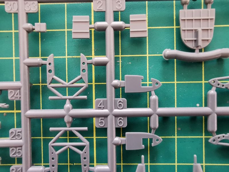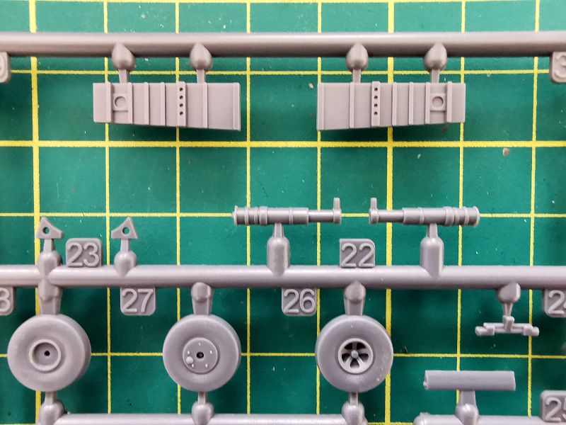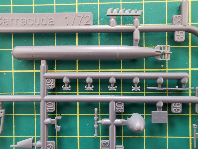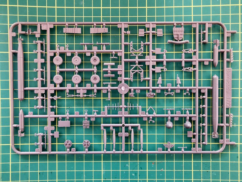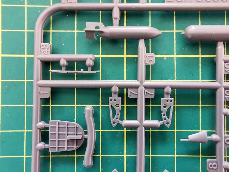 Trzecia wypraska została zaprojektowana przy wykorzystaniu technologii cyfrowych i bardziej przypomina modele z form stalowych z którymi short runy są często niesłusznie porównywane. Tu znajdziemy detale kabiny załogi, podwozie, śmigło oraz podwieszane środki walki. Dysponujemy także kilkoma opcjami. Do wyboru mamy bombę lotniczą lub torpedę, obowiązkowo z drewnianym stabilizatorem. Są tez dwa rodzaje kół oraz dwa rodzaje śmigieł. Trójłopatowego jednak nie wykorzystamy.